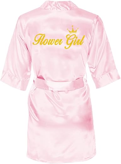 Amazon Com Progulover Kid S Satin Kimono Robe Flower Girl Robe Junior Bridesmaid With Gold Glitter Clothing
