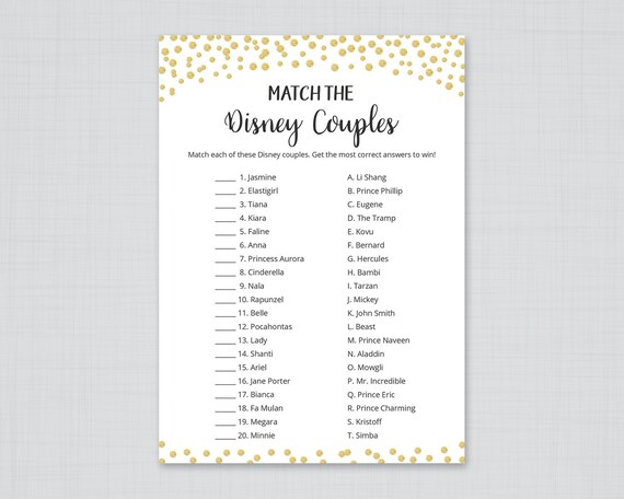 Gold Disney Couples Match Game Printable Bridal Shower Etsy
