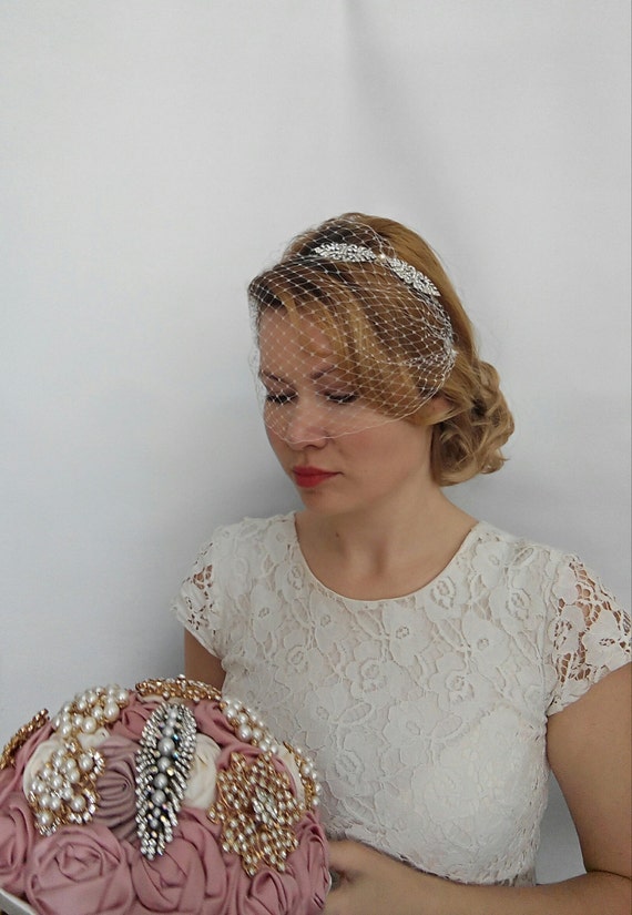 Gold Birdcage Veil Headband Blusher Birdcage Veil Wedding Etsy
