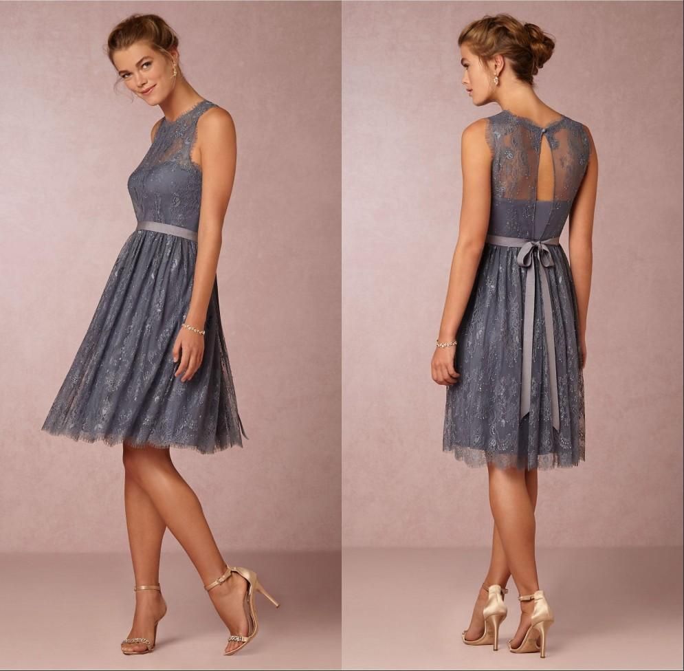 Cheap 2018 Short Knee Length Bridesmaid Dresses A Line Sash Grey