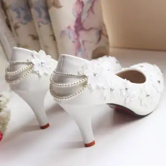New Fashion Handmade Lace Wedding Shoes White Bridal Shoes