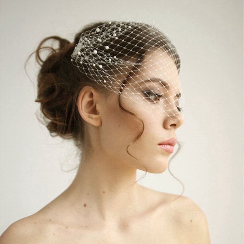 Pearl Bandeau Birdcage Wedding Veil Russian Netting Headband Veil