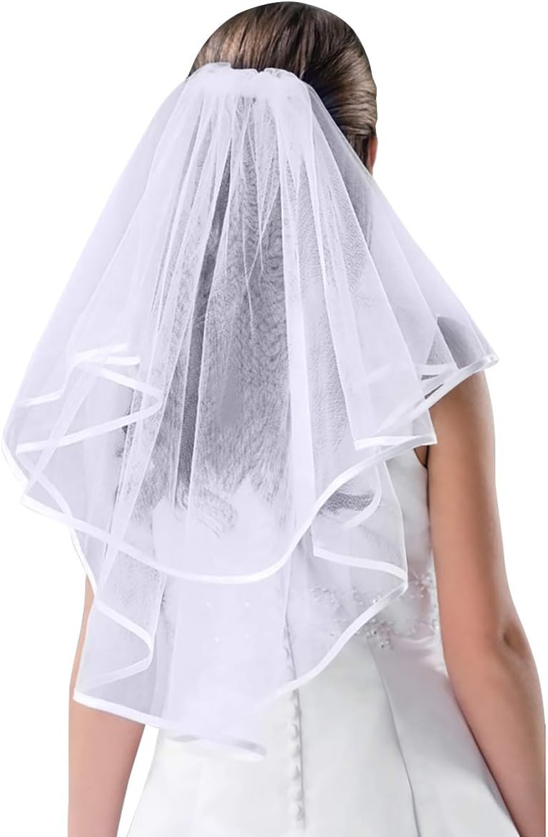 Wedding Veil White Ivory Bridal Two Layers Holy Communion Comb Hen