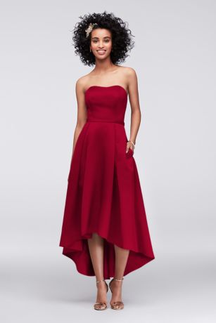 High Low Satin Bridesmaid Dress With Pockets David S Bridal