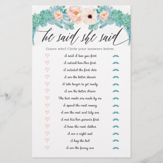 Floral Bridal Shower Game He Said She Said Zazzle Co Uk