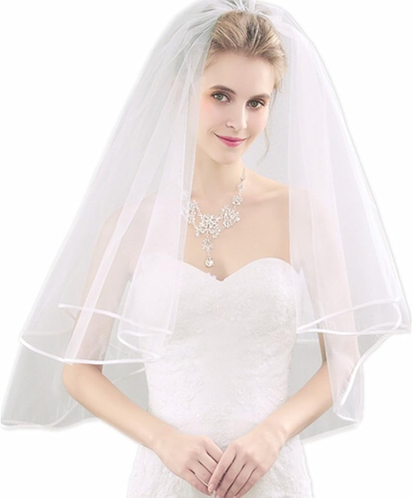 Gofypel Wedding Veil Bridal Veil 2 Layers Tulle Veils With Comb Lace Ribbon Edge White Ivory Veil Ivory At Amazon