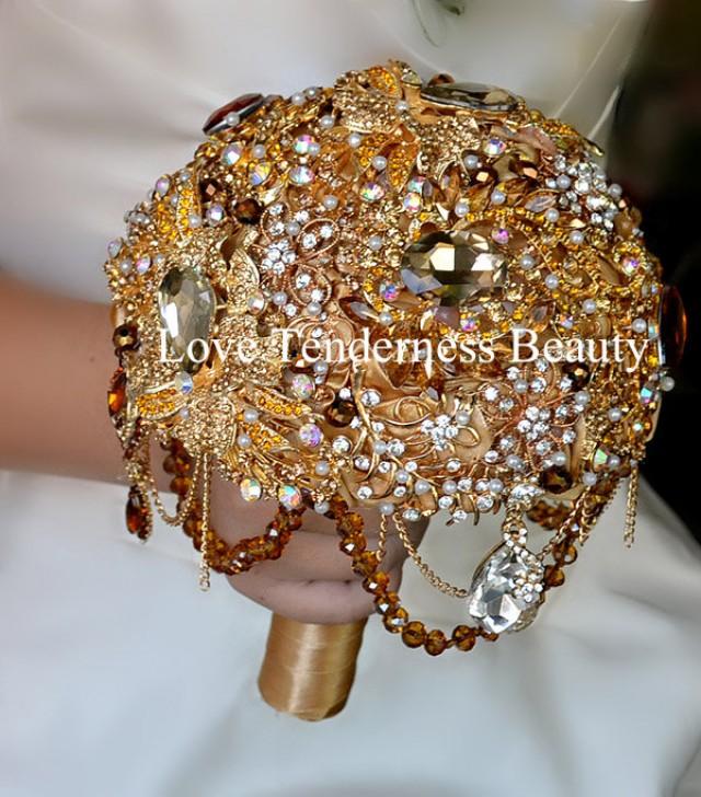 Baroque Brooch Bouquet Gold Wedding Brooch Bouquet Amber Bridal