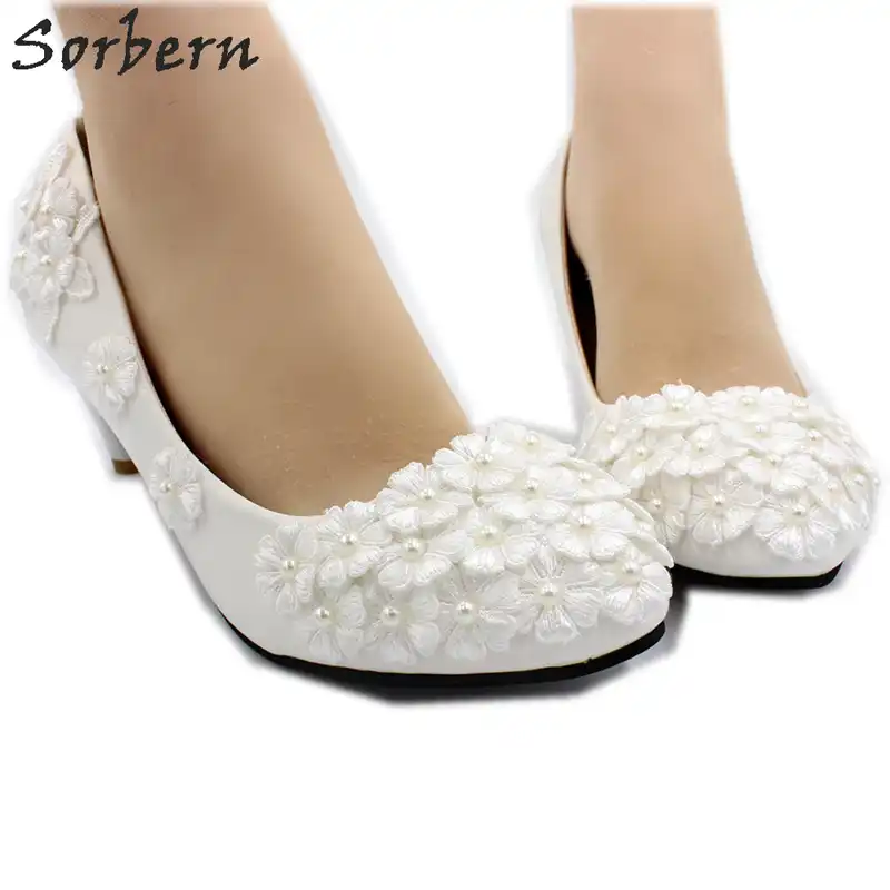 Sorbern Ivory Beaded White Flowers Wedding Shoes Med Heels Pump