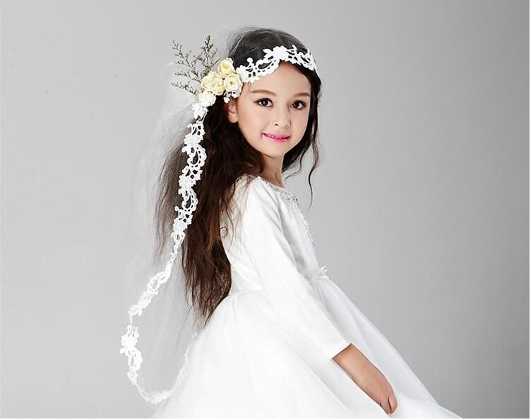 Princess White Flower Girl Veil Girls Church Lace Two Layers Cheap