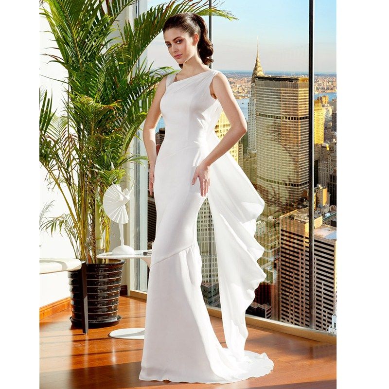 Lan Ting Bride Sheath Column Wedding Dress See Through Sweep