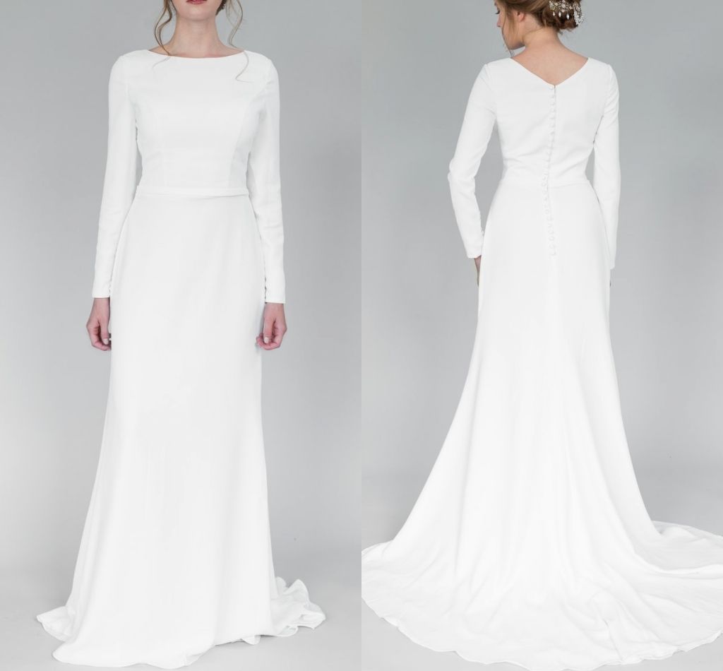 2019 Summer New A Line Chiffon Modest Wedding Dresses With Long