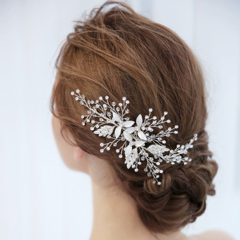 Gorgeous Handmade Silver Leaf Hair Vine Bridal Comb Rhinestone