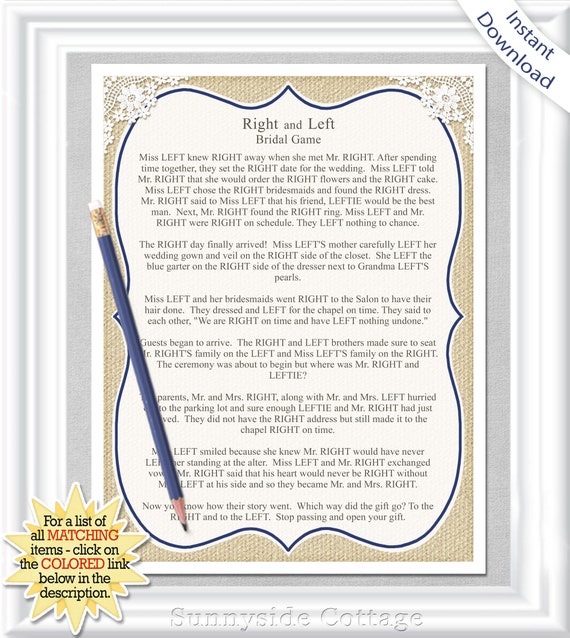 Right And Left Bridal Shower Game Instant Download In A Etsy