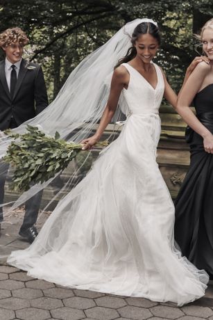 Two Tier Cathedral Length Veil With Raw Edge David S Bridal