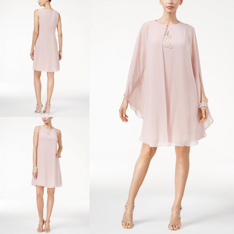 Mother Of The Bride Dresses Pink Chiffon Sleeveless Beaded Plus Size Short Mothers Dress With Wraps Prom Gowns Shop Mother Of The Bride Dresses The Mother Of The Bride Dress From Greatvip