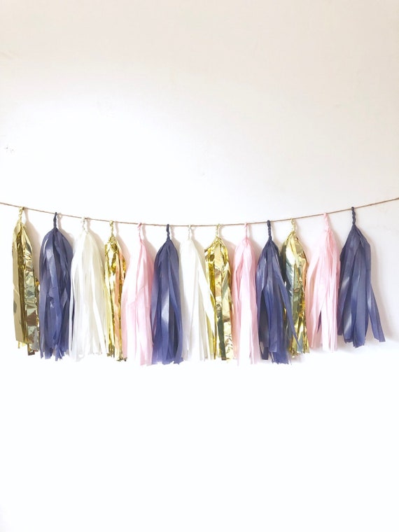 Navy Blue Blush And Gold Tassel Garland Baby Shower Etsy