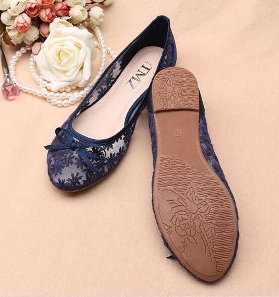 Ladies Lace Ballerina Flat Shoes White Navy Blue Ballet Flats