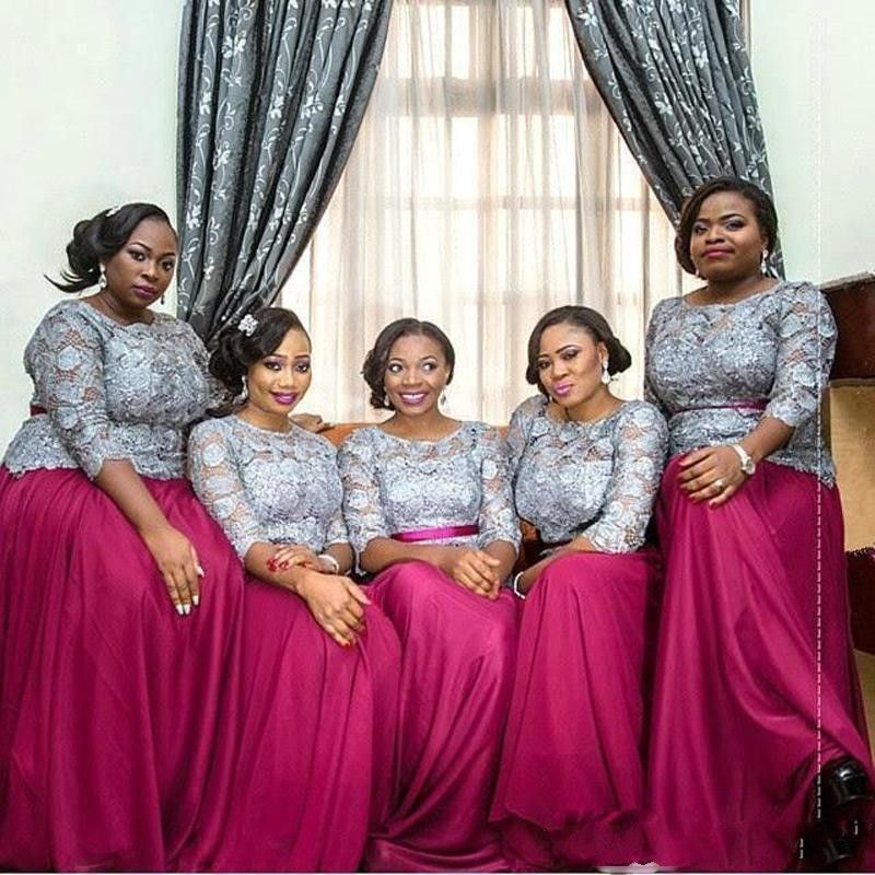 Gray And Fuchsia Plus Size Bridesmaid Dresses South African Lace