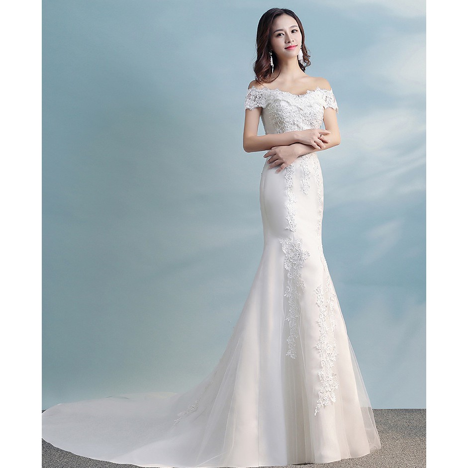 Beaunique Mermaid Bridal Gown Off Shoulder Wedding Dress Extended Length Shopee Malaysia