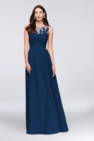 Oleg Cassini Marine Appliqued Illusion Faille Bridesmaid Formal