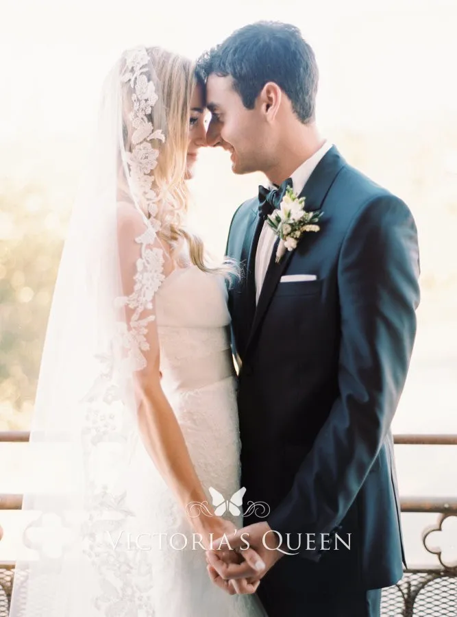 Floral Lace Wedding Veil Single Tier Chapel Length Veil Vq