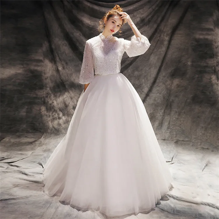 Long Sleeve Pakistani Bridal Dresses Heavy Crystal Beads Two Price
