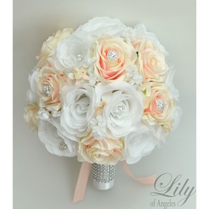 17 Piece Package Silk Flower Wedding Bridal Bouquets Peach Pink