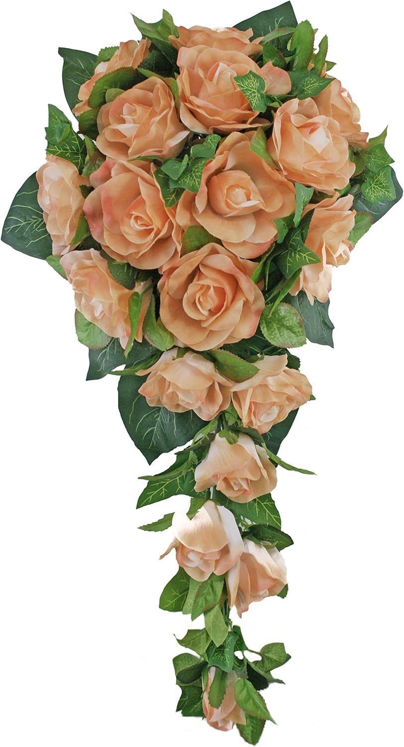 Amazon Com Peach Silk Rose Cascade Wedding Bouquet