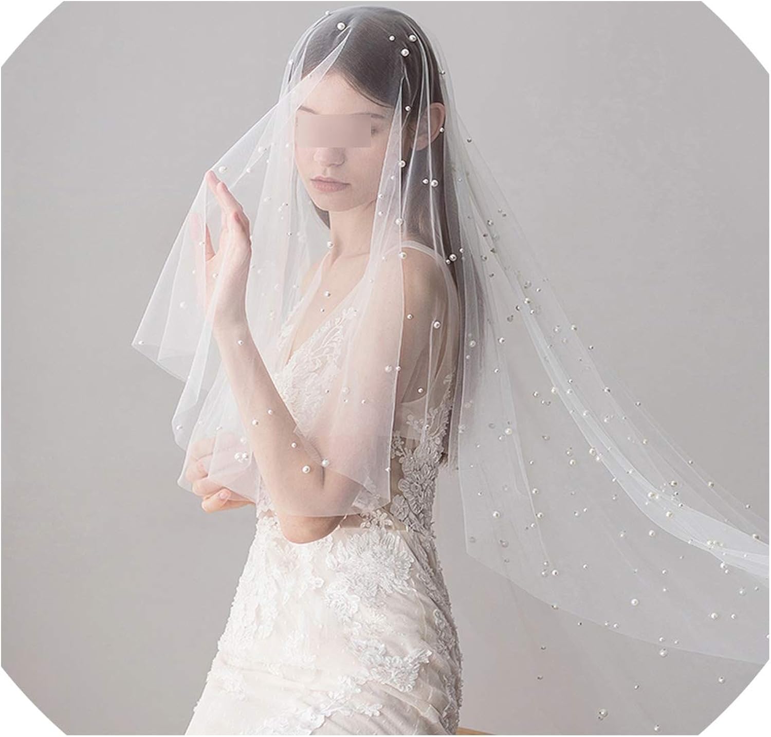 Topqueen Pink Pearl Veil Wedding White Veil Ivory Veil For Brides