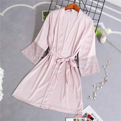 Iamzhl Women Silk Satin Short Night Robe Kimono Robe Sexy Lace