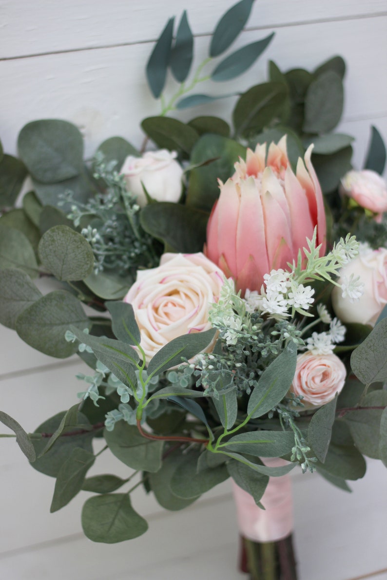 Bridal Bouquet Faux Bouquet White Peony Protea Eucalyptus Wedding