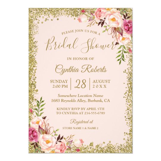 Blush Pink Gold Glitters Floral Bridal Shower Invitation Zazzle