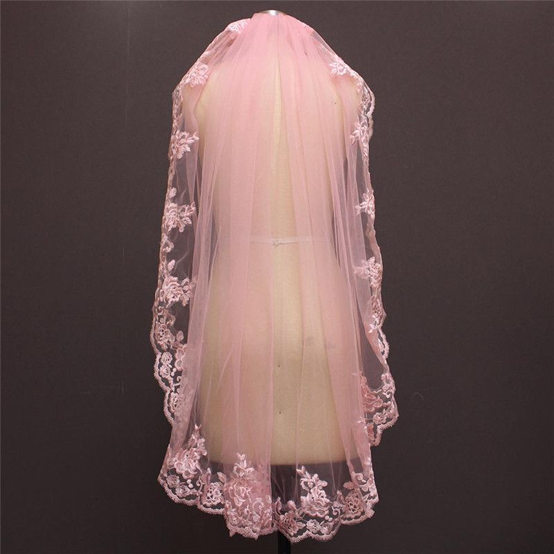 Real Photos Pink Lace Short Wedding Veil With Comb New Beautiful Bridal Veil For Wedding Dress Accessories Nv7135 Modern Wedding Veils Short Bridal Veil From Mengshangfang 15 74 Dhgate Com