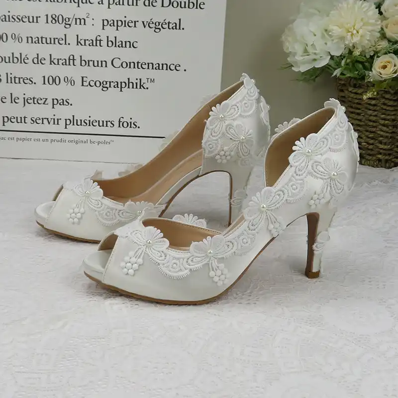 White Wedding Shoes Bride Fashion Open Toe Woman Party Dress Shoes