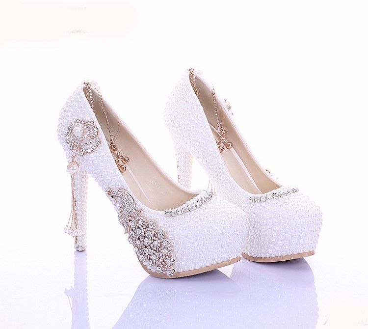 2019 Popular White Pearl Diamond Bridal Shoes Rhinestone Wedding