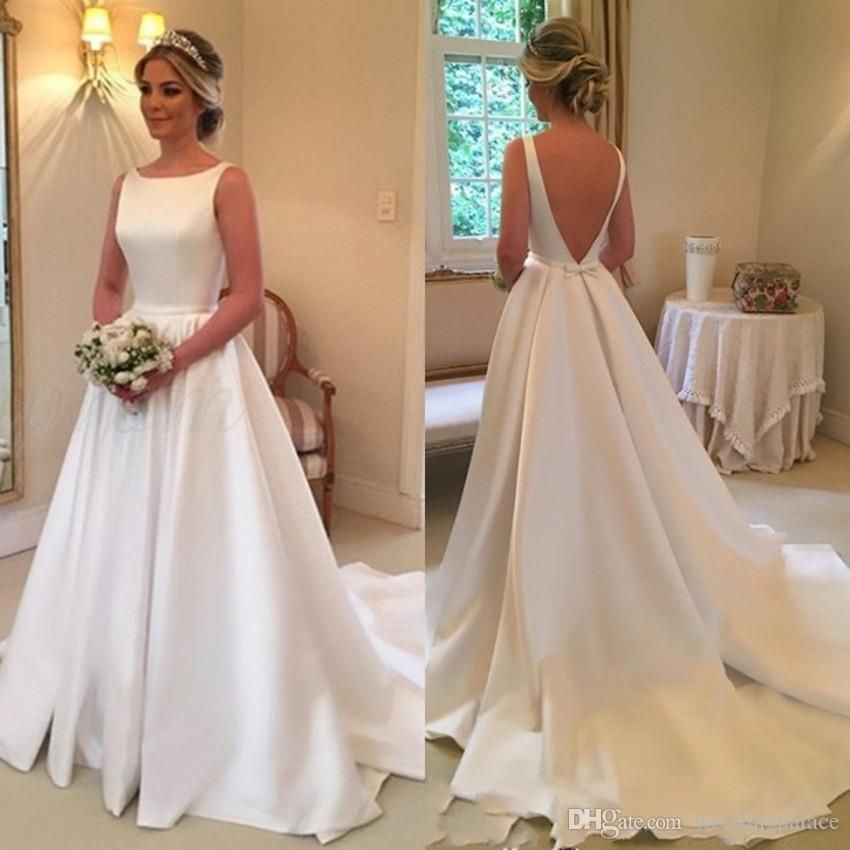 Discount Hot High Quality Scoop Neck A Line Satin Wedding Dresses