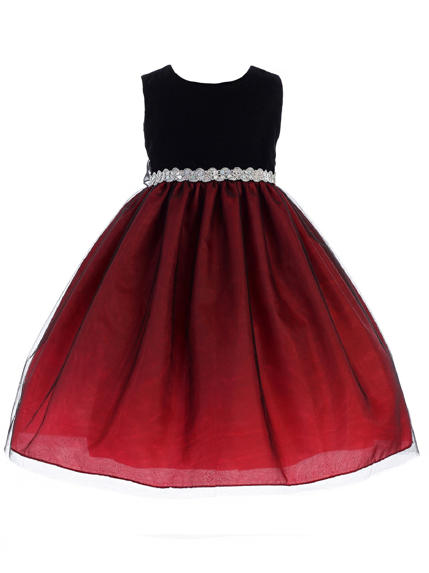 Crayon Kids Girls Red Black Sequin Belt Junior Bridesmaid Dress