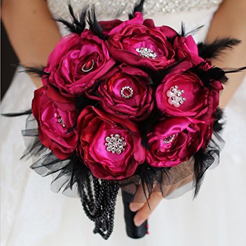 Amazon Com Iffo Ruby Red Wedding Brooch Bouquet Handmade Fabrics