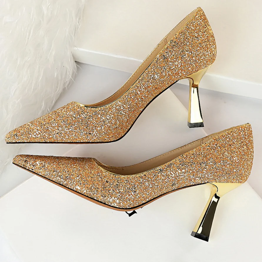 2020 Women 7 5cm High Heels Plus Size Wedding Scarpins Glitter
