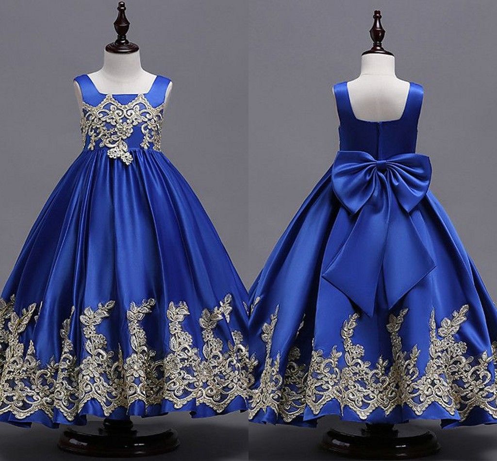 Shop Big Girls Royal Blue Gold Lace Embroidery Junior Bridesmaid Dress Overstock 22465784