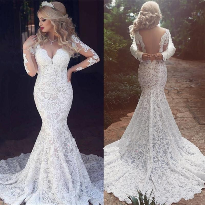 Vintage Full Lace Wedding Dresses Sexy Open Back V Neck Classic