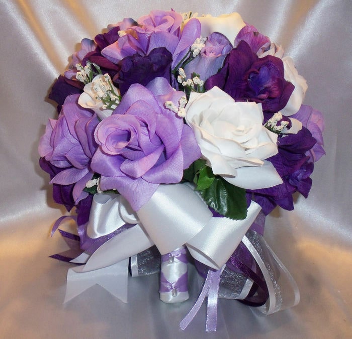 Buy Round Silk Bridal Bouquet Package Purple Lavender White Lily Wedding Flowers Online At Low Prices In India