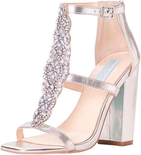 David S Bridal Crystal T Strap High Heel Sandals With Block Heel