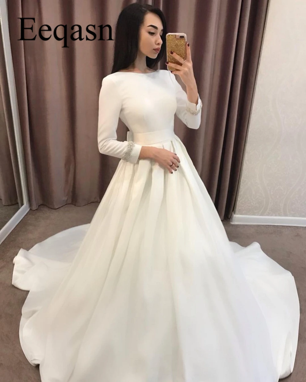Long Sleeve 2020 Wedding Dresses A Line Satin Simple Turkey
