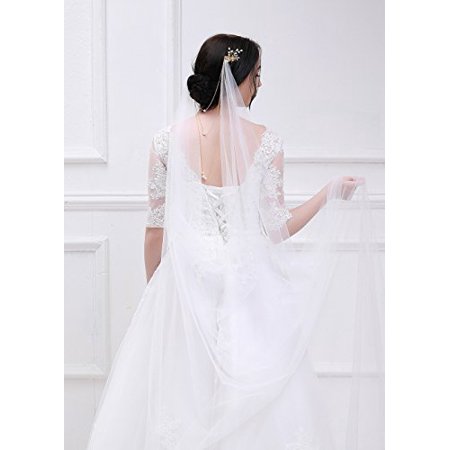 Kercisbeauty 3m 1 Tier Soft Tulle Sheer Cathedral Wedding Lace Veil Single Layer Drop With Gold Flower Comb Multi