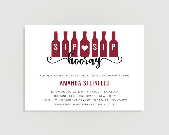 Wine Bridal Shower Invitation Sip Sip Hooray Wine Tasting