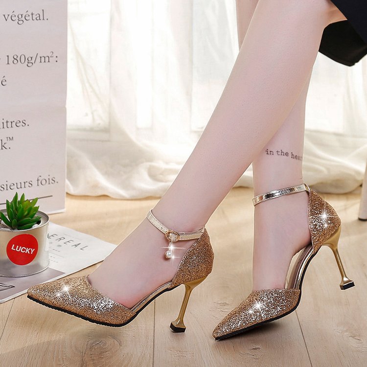 In Stock Crystal Women S Shoes Small Heels Wedding Shoes Sequins French Fairies Fine Heels Cats And Bridesmaids H Shopee Malaysia