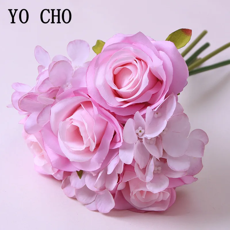 Silk Hydrangeas Roses Artificial Flowers Bouquet White Wedding