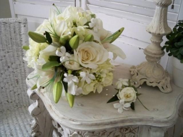 White Bridal Bouquet White Roses And Stephanotis In Braintree Ma