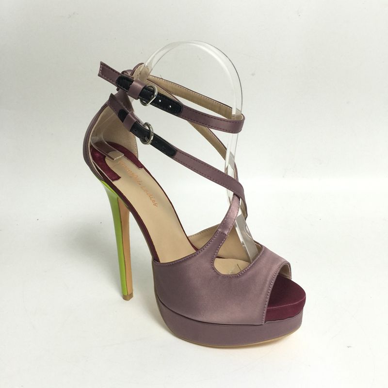 Dust Purple Satin Bridal Shoes Peep Toe High Heels T Strap